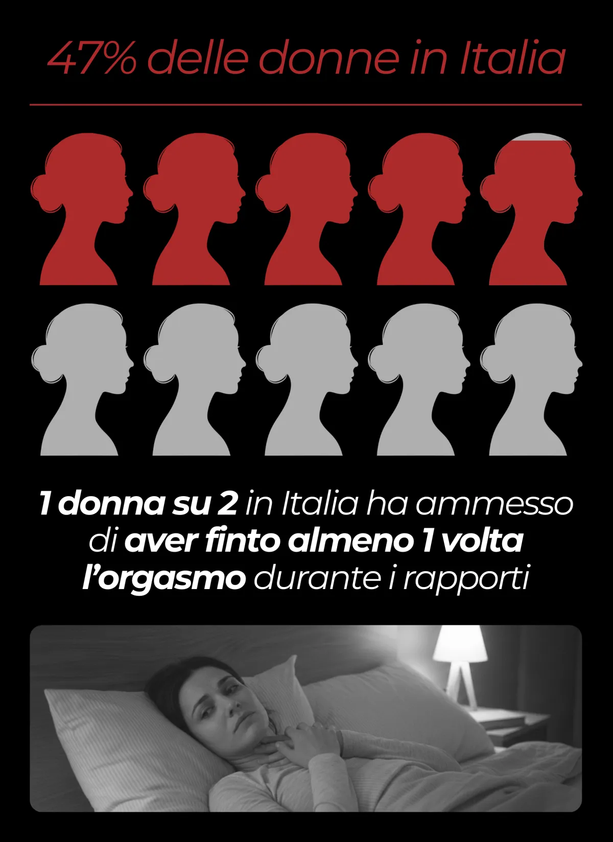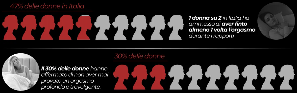 ● Il 47% delle donne in Italia ha ammesso di aver finto un orgasmo almeno una volta nella vita.