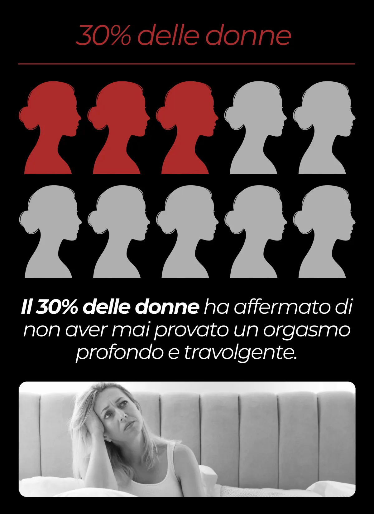 ● Solo il 30% delle donne afferma di aver mai provato un orgasmo profondo e travolgente.